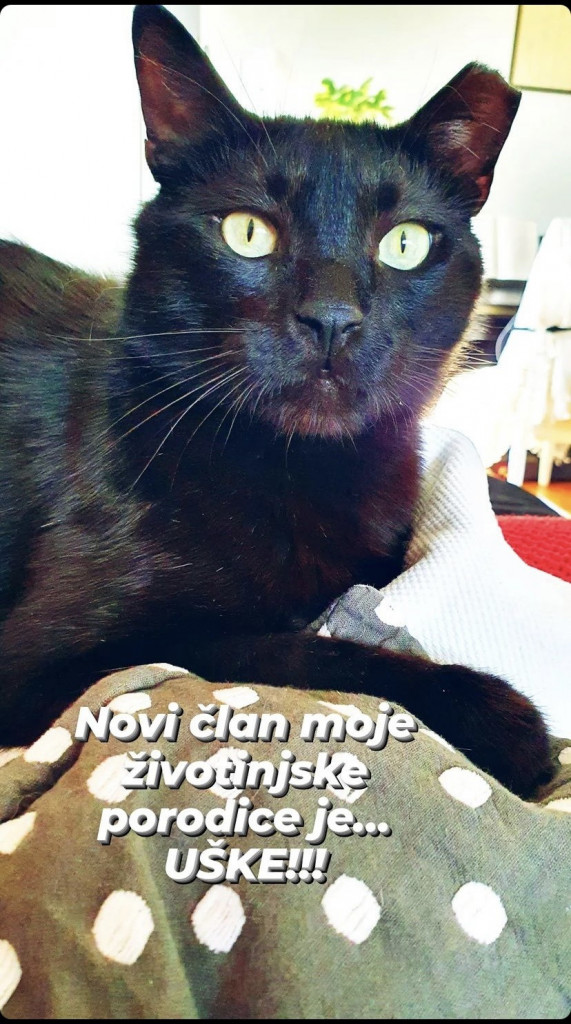 Kao što se već da pretpostaviti reč je o mačku, kojeg je pevačica i autorka nekih od najlepših domaćih pesama pronašla u parku, redovno ga hranila, a kada je jednoga dana Uške pošao za njom kući, u dogovoru sa Romanom pružila mu je krov nad glavom.