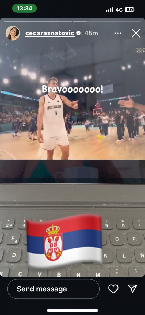 Srbija je pobedila reprezentaciju Nemačke, a bronzana medelja oduševila je sve one koji su navijali za naš tim. Među njima je i folk diva koja je odmah po završetku utakmice na svom storiju poželela da čestita „orlovima”.