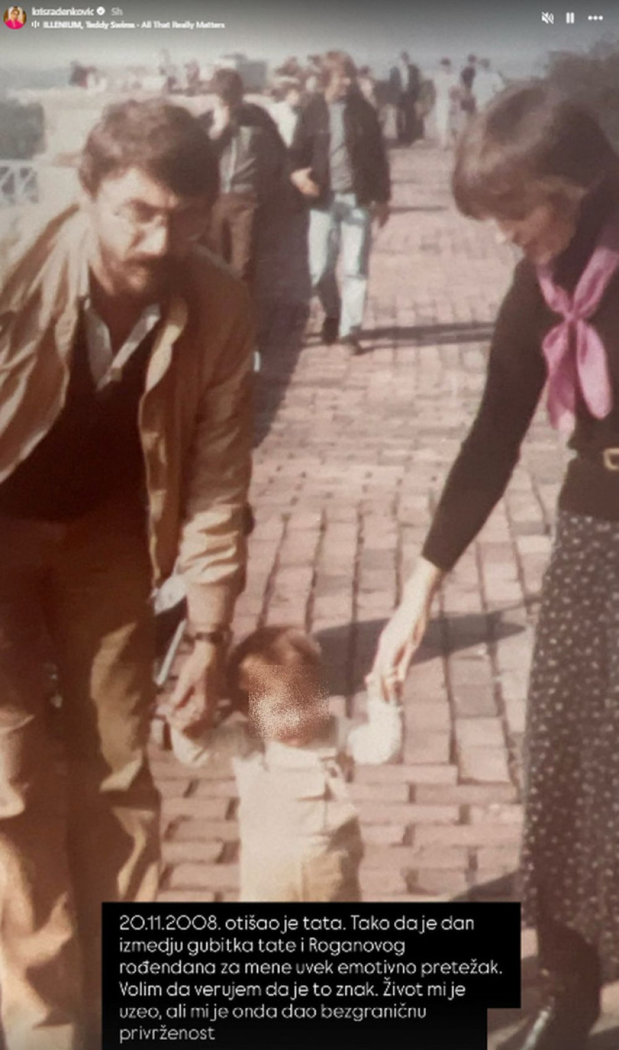 Na Instagram storiju podelila je njihovu zajedničku fotografiju, uz reči koje paraju srce, ali u isto vreme nose snažnu poruku nade i vere.